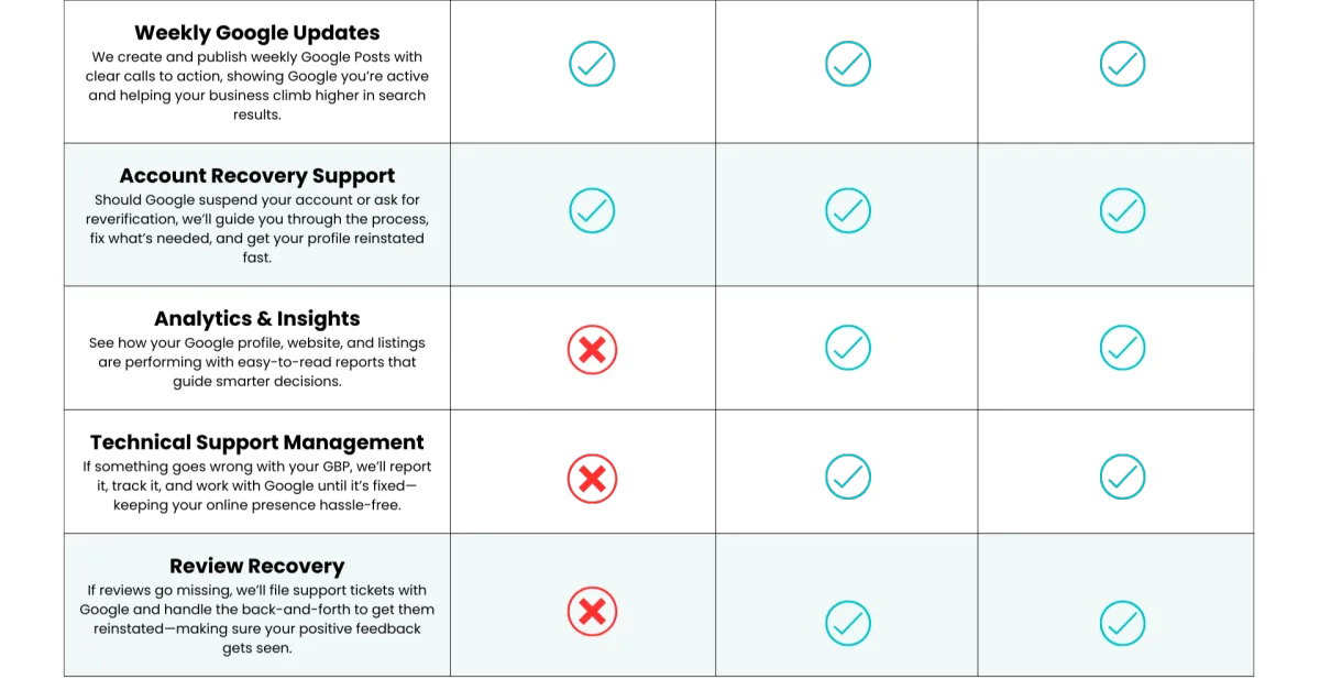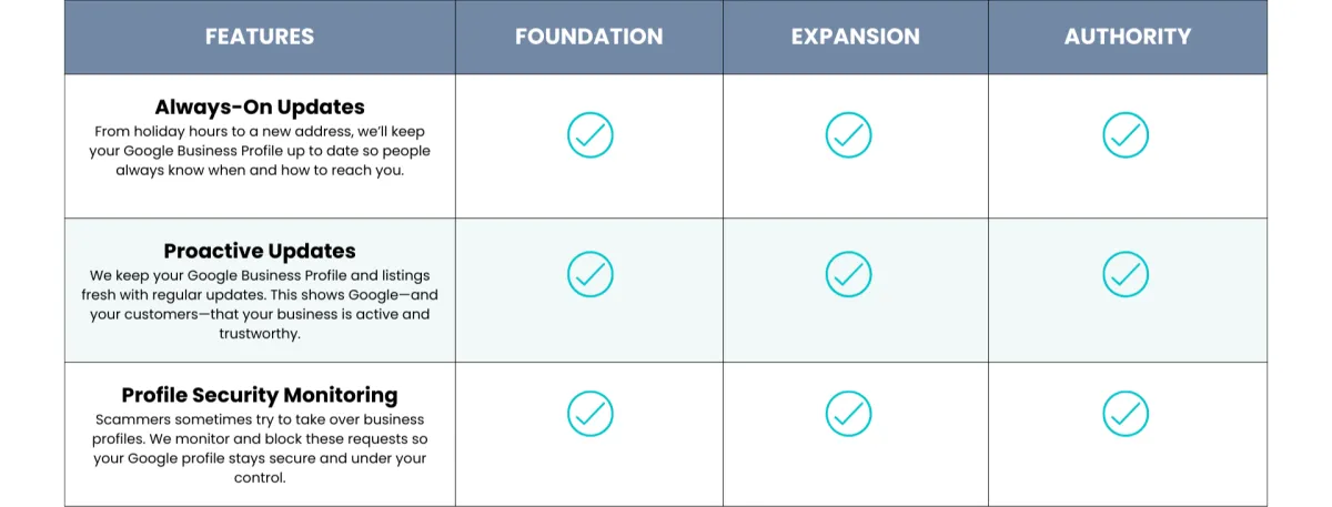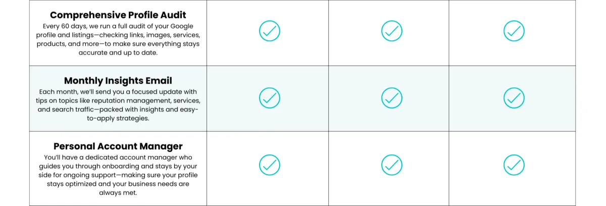 After your Google Business Profile is live, most clients begin to see improvements in visibility and customer perception within a week or two. While we’re setting things up, we’ll send you updates showing progress on your profile and business listings.