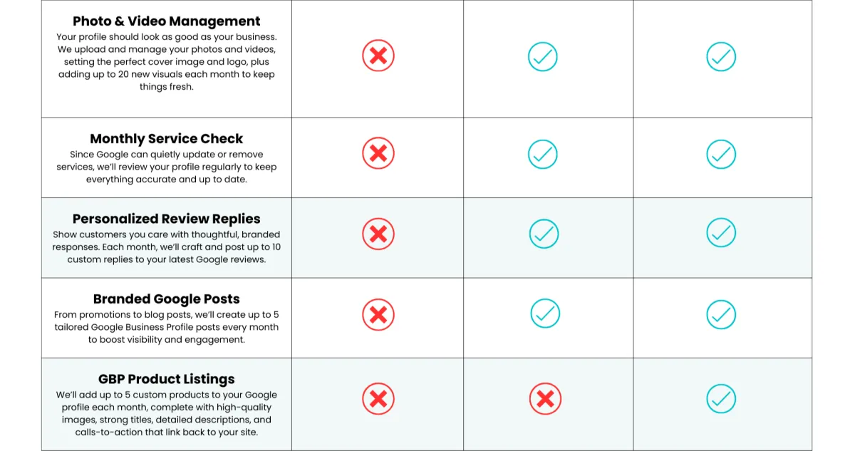 We’ll add up to five industry-specific products with optimized titles, descriptions, backlinks, and calls-to-action to highlight your services and attract customers.