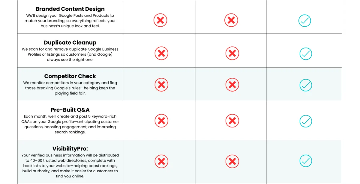 It’s important to note that while we optimize for visibility, we can’t promise specific rankings—no one can. Google’s algorithm is complex and ever-changing, and even Google warns against anyone offering ranking guarantees.